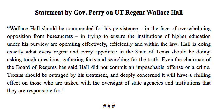 Perry comes out swinging for Wallace Hall